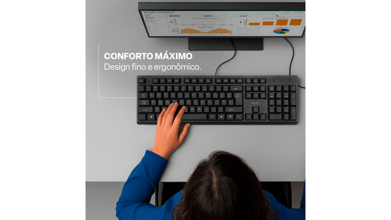 teclas macias e silenciosas garantem conforto e produtividade durante a digitação.