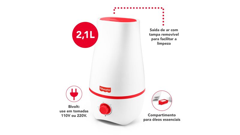 Umidificador de Ar Ultrassônico 2,2L Bivolt Automático Fisher Price - HC055